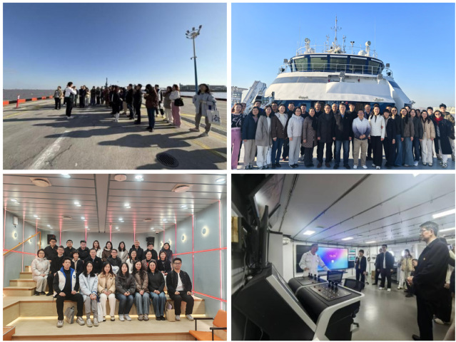 在船舶中心工作人员的专业导引下,参访团队登上 “同济” 号智能科考船,首先从外观设计、整体构造与空间布局切入,对这艘兼具科研功能与生活保障属性的海上 “移动实验室” 形成框架性认知;随后,围绕船舶概况、核心功能亮点及船载科研设施展开系统讲解,并带领众人实地探访驾驶舱、实验室、生活区等区域,沉浸式体验海上航居环境与科研作业场景。