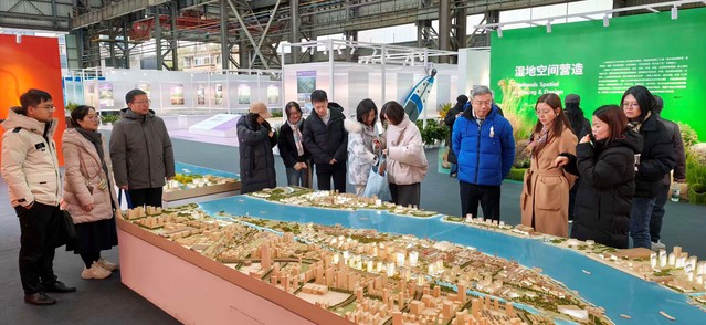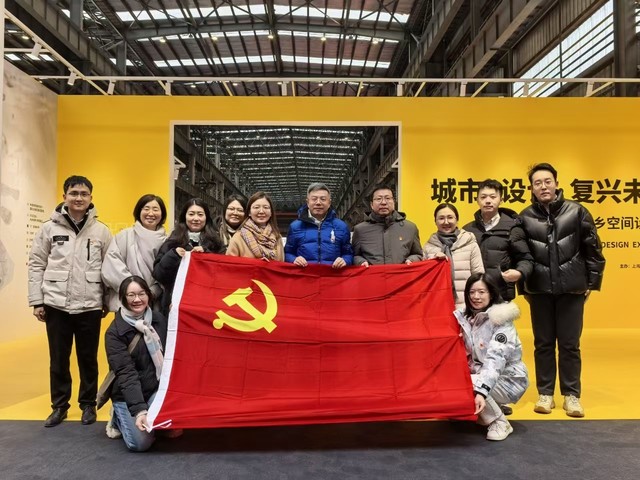 活动伊始,支部党员一行来到船台PARK,实地调研船台公园建设整体情况与滨江规划相关工作,现场参观了C馆“城市・设计・复兴未来——2025上海城乡空间设计展”。在专业讲解的引导下,党员们沉浸式了解上海城乡空间设计的创新成果、滨江区域城市更新的实践路径,直观感受“人民城市人民建,人民城市为人民”重要理念在上海落地生根的生动实践,深刻认识到城市建设中以人为本、统筹发展与民生保障的核心内涵。