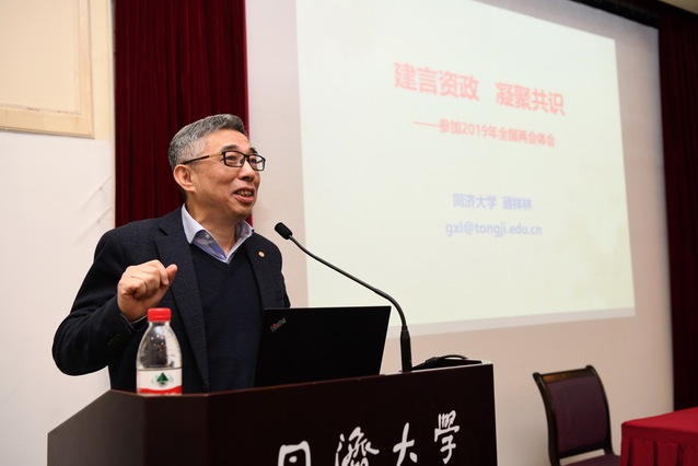 会上,全国政协委员、同济大学副校长顾祥林作《建言资政,凝聚共识——参加2019年全国两会体会》的报告。顾校长详细介绍了审议政协常委会工作报告及提案工作的情况,参与讨论政府工作报告、两高报告、外商投资法的体会,作为教育界委员关注的热点,以及自身履职情况等,最后分享了会场的一些精彩花絮。